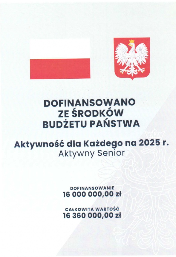 oraz w ramach programu Aktywny Senior dofinansowanie Fundacja Lottto